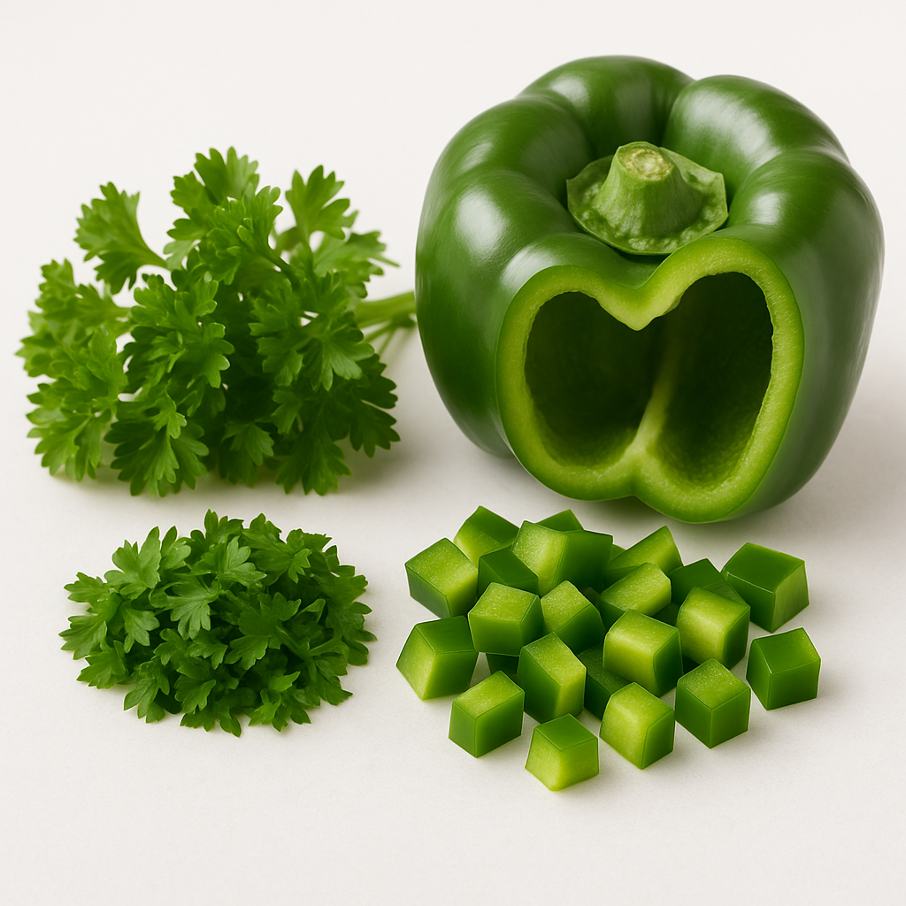 • 新鮮な野菜で補助(パセリ、ピーマンなど)